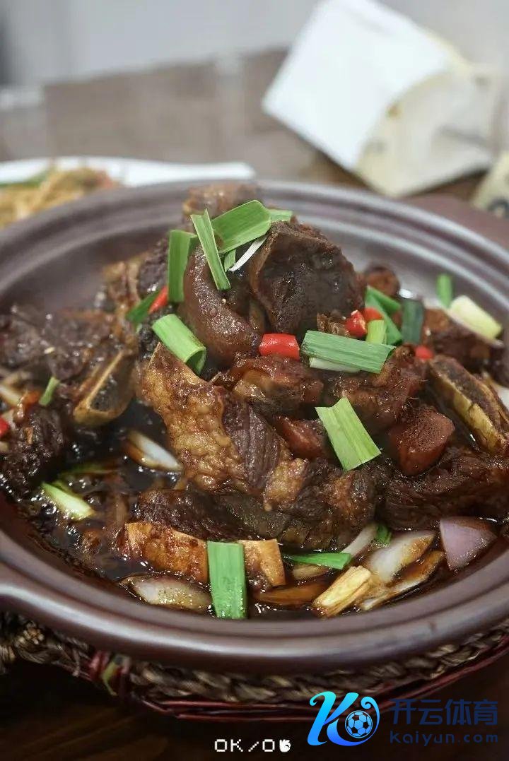 猪蹄炖牛排 ,用一口小砂锅装,冬天吃很相宜。