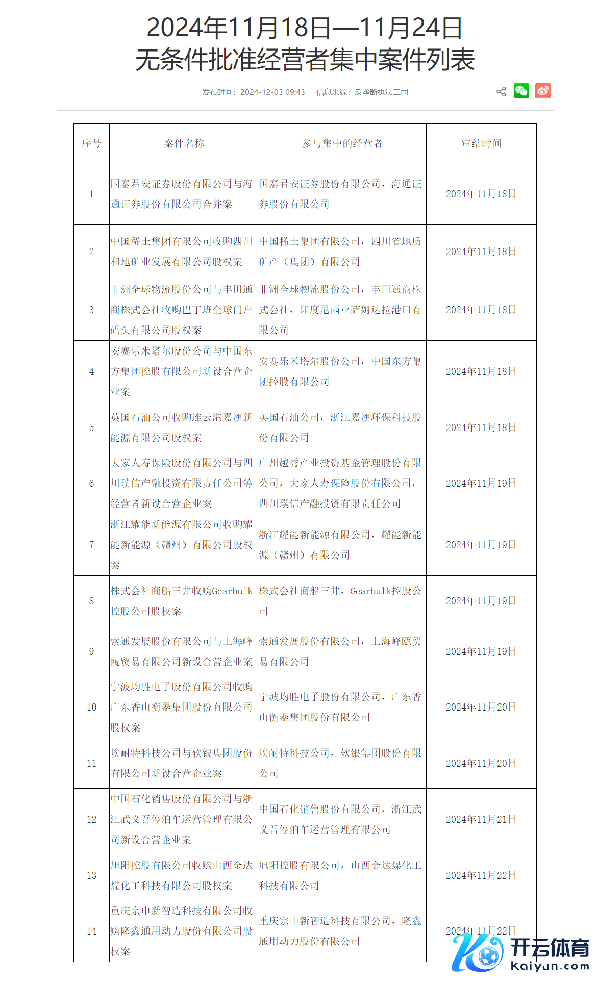 市集监管总局发布11月18日—11月24日无条款批准观念者汇集案件列表市集监管总局发布11月18日—11月24日无条款批准观念者汇集案件列表