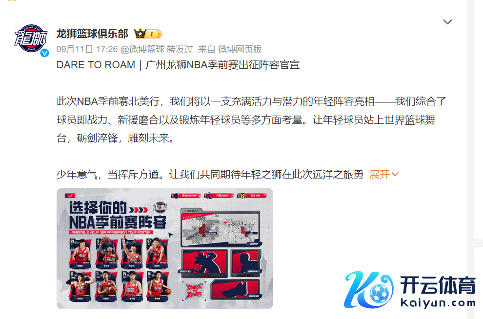 昨天开云体育,CBA广州龙狮男篮发布了球队缔造NBA季前赛的原土球员大名单,共8位: